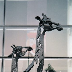 2005 Omni building, Edinburgh: Dreaming Spires. 2 larger than life giraffes on the pavement.